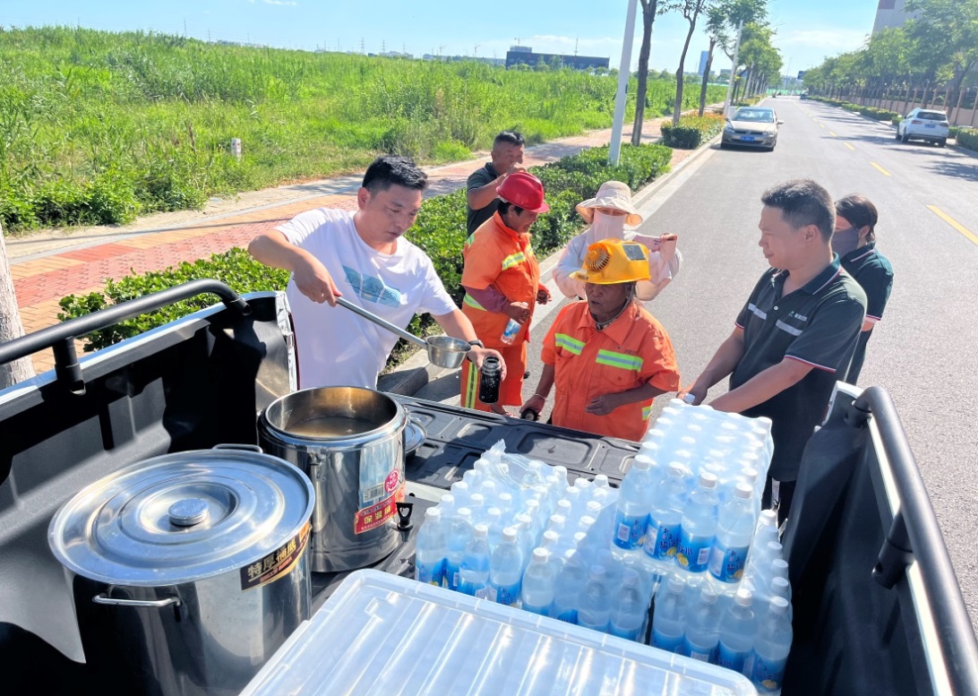 發(fā)放防暑飲品,為工人送清涼。組織各外包單位準(zhǔn)備綠豆湯、鹽汽水等防暑降溫飲品,并配送到工人手上,讓每個(gè)工人都能及時(shí)喝到消暑解渴飲品,感受清涼與關(guān)愛(ài)。