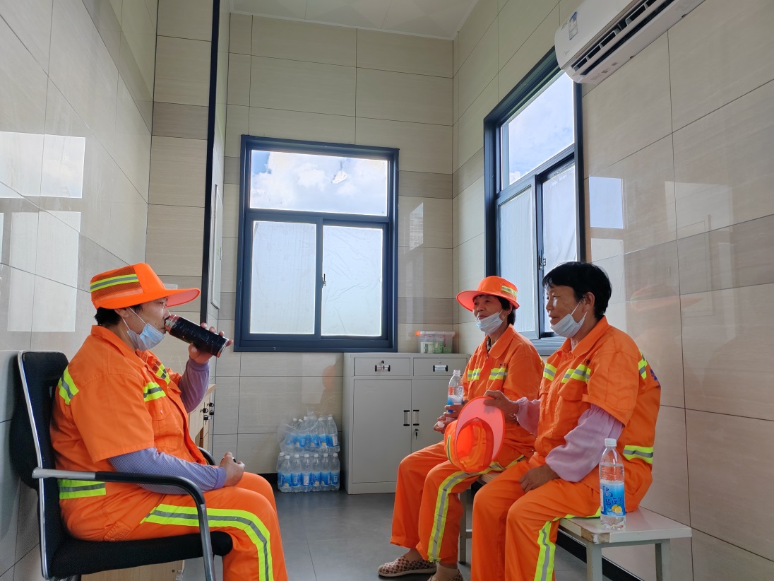 “清涼驛站”全開(kāi)放,避暑納涼有去處。配有空調(diào)、防暑降溫藥品、飲用水的31座公共廁所的休息室、管理間全部對(duì)外開(kāi)放,工人作業(yè)間歇,可以隨時(shí)到“驛站”避暑納涼,讓一線工人在酷暑中享受一絲清涼。