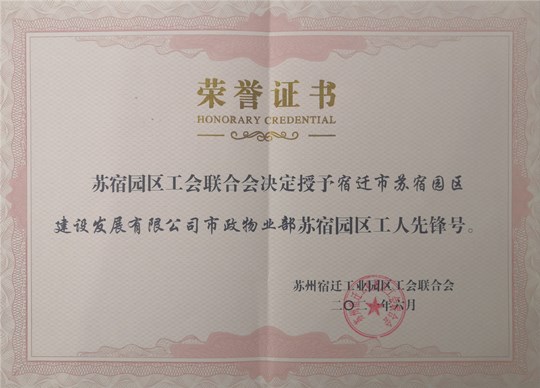 近日,建發(fā)公司市政物業(yè)部被蘇宿園區(qū)工會(huì)聯(lián)合會(huì)授予“蘇宿園區(qū)工人先鋒號(hào)”榮譽(yù)稱(chēng)號(hào)。