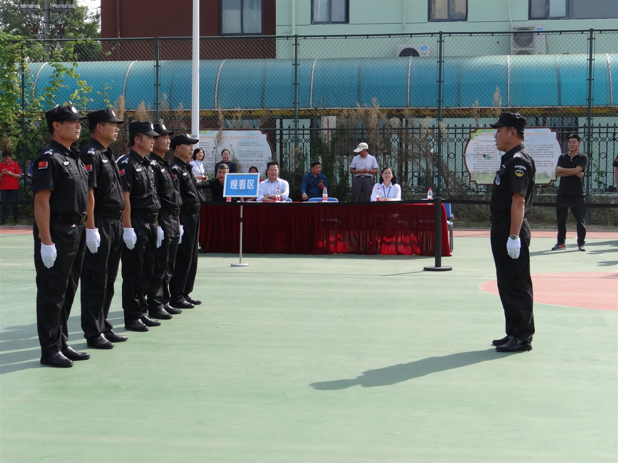 本次安保大比武活動共有3家參賽隊伍,分別是蘇宿工業(yè)坊項目單位江蘇國保、園區(qū)公舍項目單位江蘇天翔、外國語學校項目單位蘇州君鼎代表隊,共計60余人,各支隊伍紛紛選派精兵參加比拼。參賽隊伍一一進行隊列展示,評委進行統(tǒng)一打分,在3支參賽隊伍完成會操比賽后,又進行了消防業(yè)務、體能等項目,現(xiàn)場你追我趕,體現(xiàn)了團隊風采。