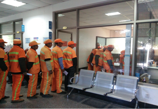根據(jù)前一天的安排,環(huán)衛(wèi)工人早早來(lái)到集合地點(diǎn)統(tǒng)一乘車(chē)到了市疾控中心參加免費(fèi)體檢,拿著早一天分到的體檢明細(xì)單緊張有序地進(jìn)行每一項(xiàng)檢查,外科、內(nèi)科、心電圖、、胸透、肝功能、腎功能等如此系統(tǒng)全面的健康檢查,對(duì)于他們中的大部分人都是頭一回。參加體檢的環(huán)衛(wèi)工人紛紛表示,此次體檢能夠讓他們更加了解自身的健康狀況,感謝政府的關(guān)心,我們將更加努力干好工作,使城市的環(huán)境更加干凈整潔。